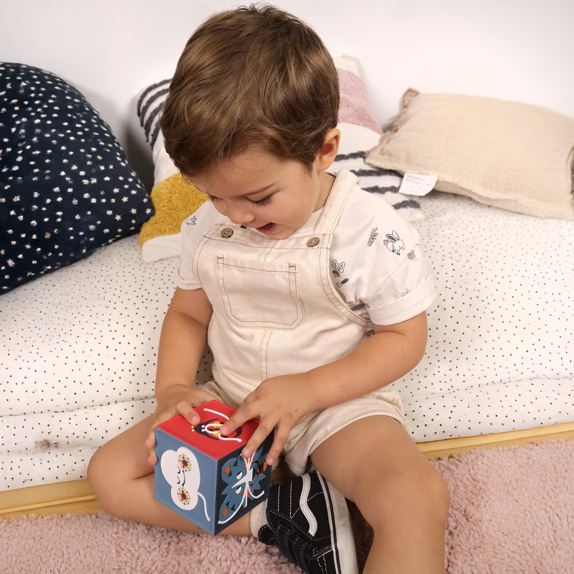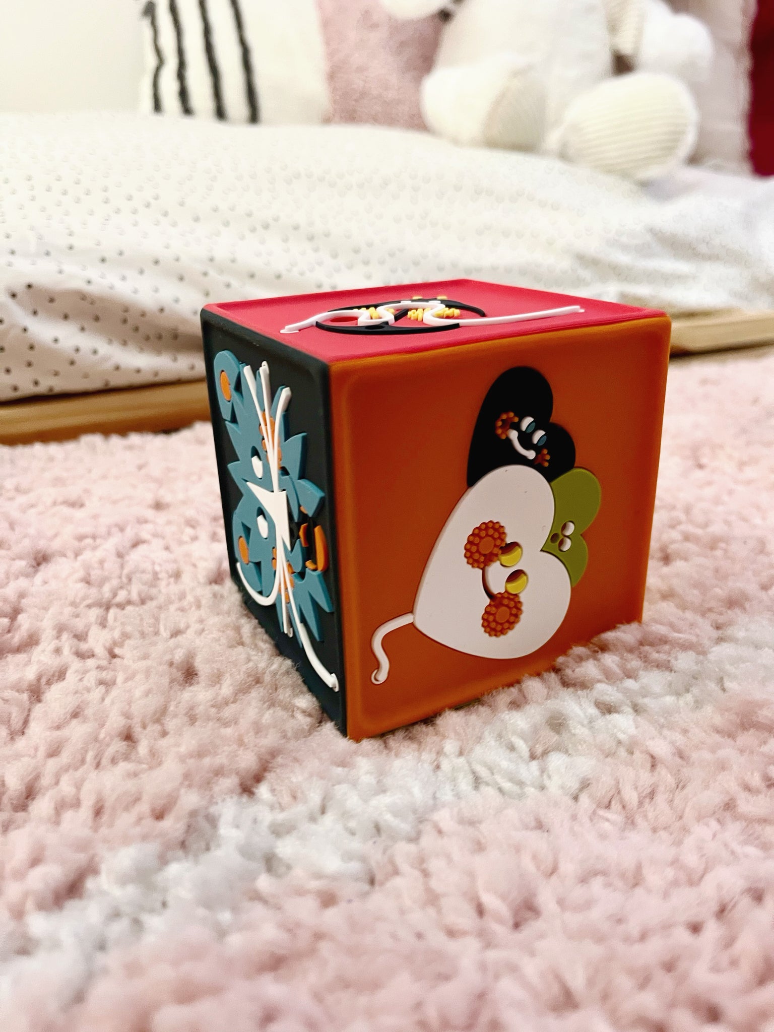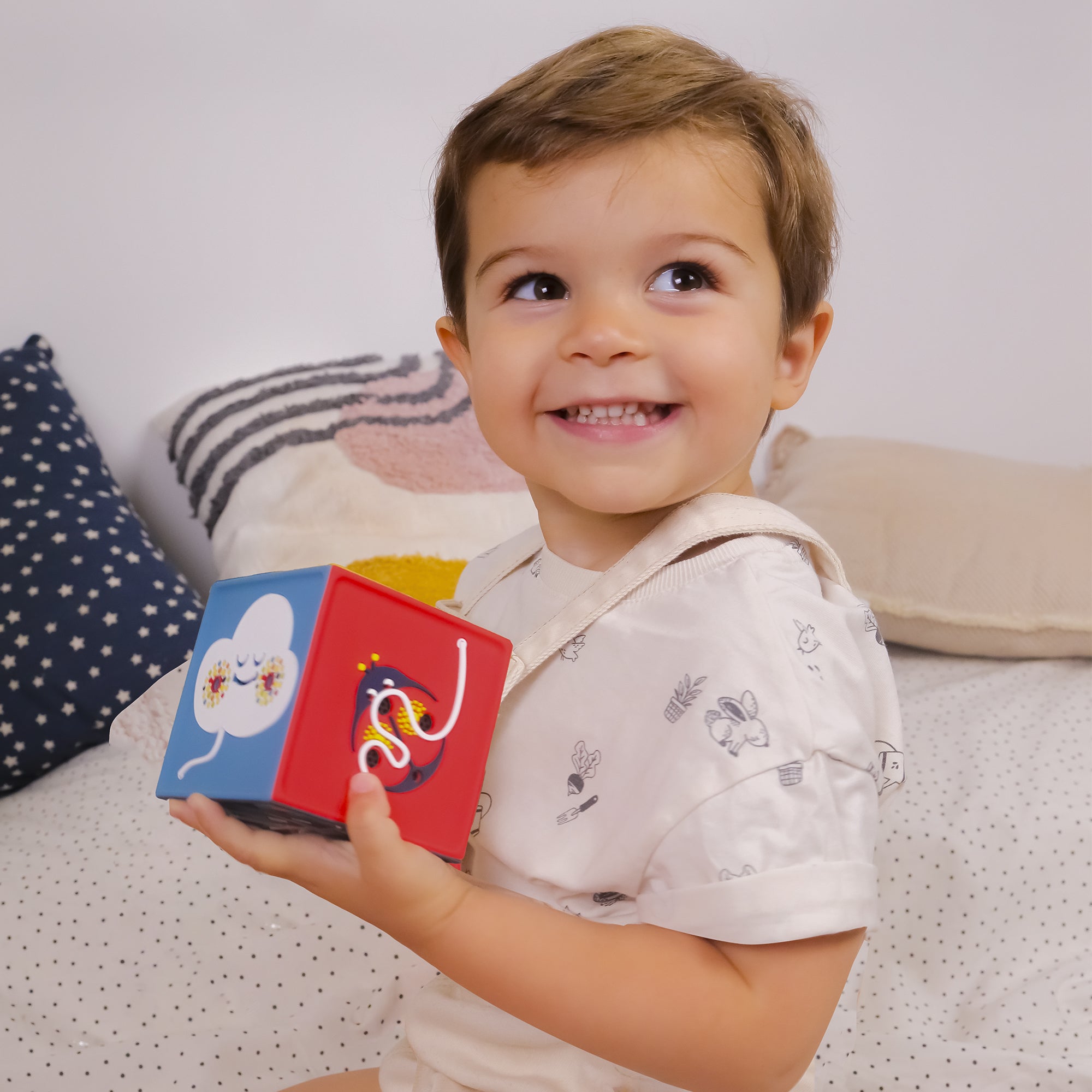 Elle accompagne les bébés dès la naissance et au quotidien. Son habillage en silicone alimentaire est parfaitement adapté et sans risque. Elle résiste aux petites chutes.